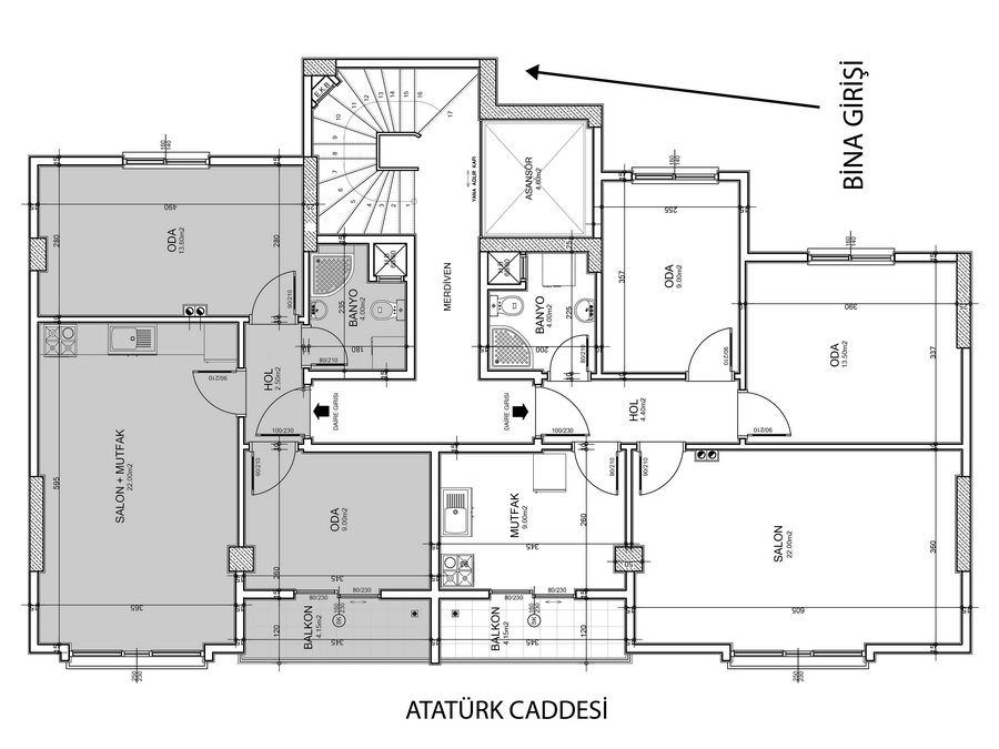 Yalova Çiftlikköy'de Çiftlik Mahallesi, Atatürk Caddesi üzerinde bulunan projemiz 1 blok olup 6 adet 2+1 daireden oluşmakta ve zemin katta 2 adet dükkan bulunmaktadır. Projemizde 80m² ve 91m² olmak üzere iki tip 2+1 daire bulunmakta olup, 80m² olan daire Amerikan mutfaklıdır. Zemin katta bulunan dükkanların ikisinin toplamı 250m² olup bodrum katta ise tamamı dükkanlara ait 170m² bodrum bulunmaktadır.